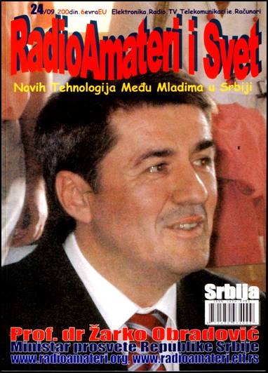 Strana 1: Ministar prosvete Republike Srbije – Prof. dr Žarko Obradović, raniji dekan Fakulteta za državnu upravu i administraciju Megatrend univerziteta u Beogradu i dugogodišnji član Saveta Revije RadioAmateri i Svet.